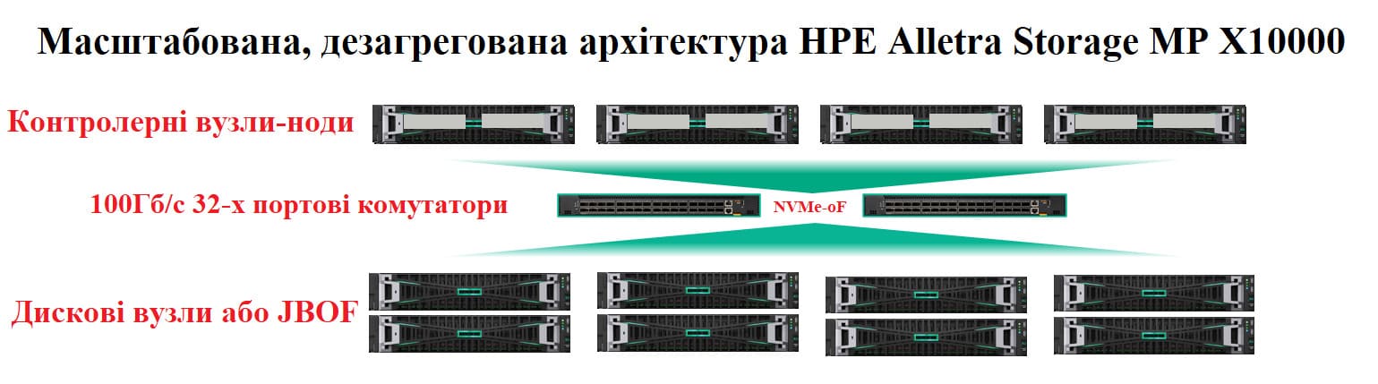 Далі коротко описуються архітектурні елементи рішення HPE Alletra Storage MP X10000.